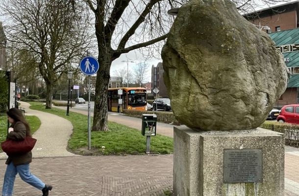 Waarom deze bushalte De Kei heet is snel te zien: er ligt een enorme kei op een sokkel nog geen tien meter van de halte. Maar er hoort een verhaal bij deze kei.