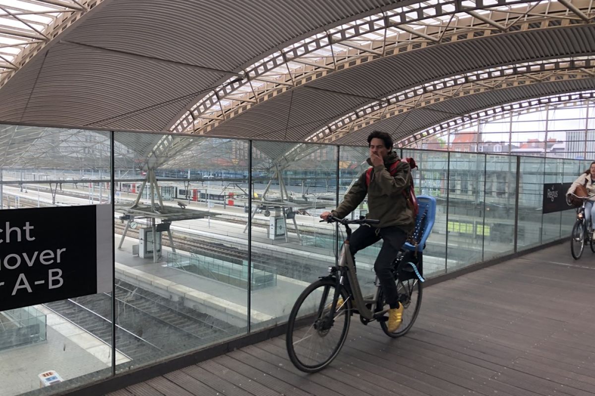 De volgende dag loopt de langste route van deze week achtereenvolgens langs het Kanaal van Bocholt naar Herentals en over de oude spoorlijn Herentals–Aarschot. Een heel fijne route met informatieborden over deze spoorlijn én met een schattig station, nu een woonhuis. We doorkruisen Leuven; we volgen zelfs een fietspad onder de overkapping van het station en over de sporen, wat een bijzondere ervaring is. Leuk verzonnen, dit! Vervolgens langs het Gotische stadhuis met zijn prachtige gevels en over de markt met mooie huizen en terrassen. Daarna zijn we alweer onderweg naar Tervuren over de ‘fietssnelweg’, een fenomeen dat in Europa steeds meer wordt toegepast. Het is veilig fietsen en het schiet lekker op.