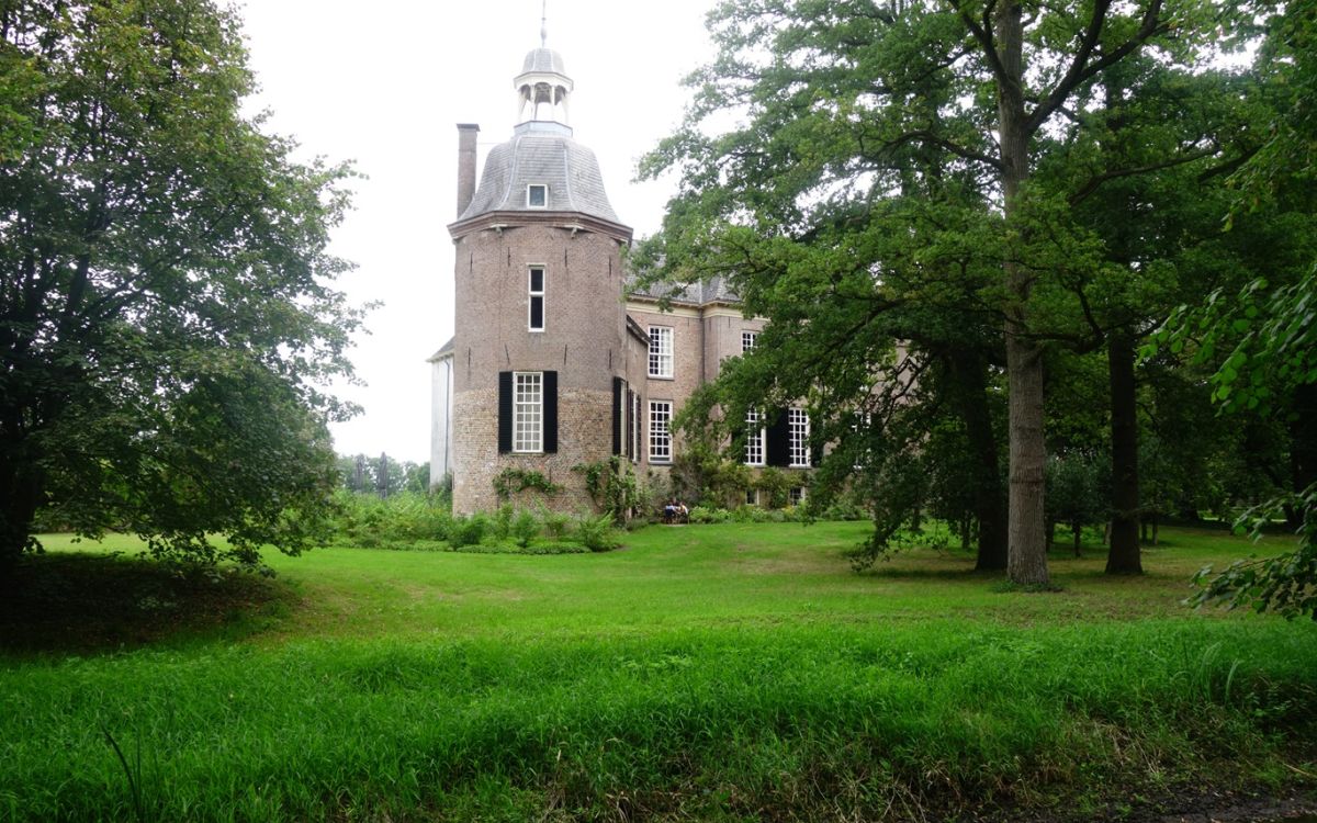Het volgende landgoed is Huis Den Bramel. Dit kasteel is in particulier eigendom en laat zich alleen uit de verte bekijken, maar ook hier kun je een ommetje maken door het bijbehorende bos. Wij doen dat niet en zetten koers naar kasteel Hackfort. Via een graspad door een weiland: de ultieme vorm van onverhard lopen.