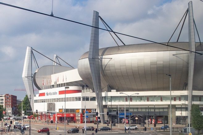 Dan krijgen we eveneens op rechts het volle zicht op het Philips stadion, de thuishaven van PSV, de huidige (2025) landskampioen. En dat is niet de eerste keer voor de Philips Sport Vereniging. Sinds de oprichting in 1913 werd de club 26 keer kampioen van de Eredivisie.