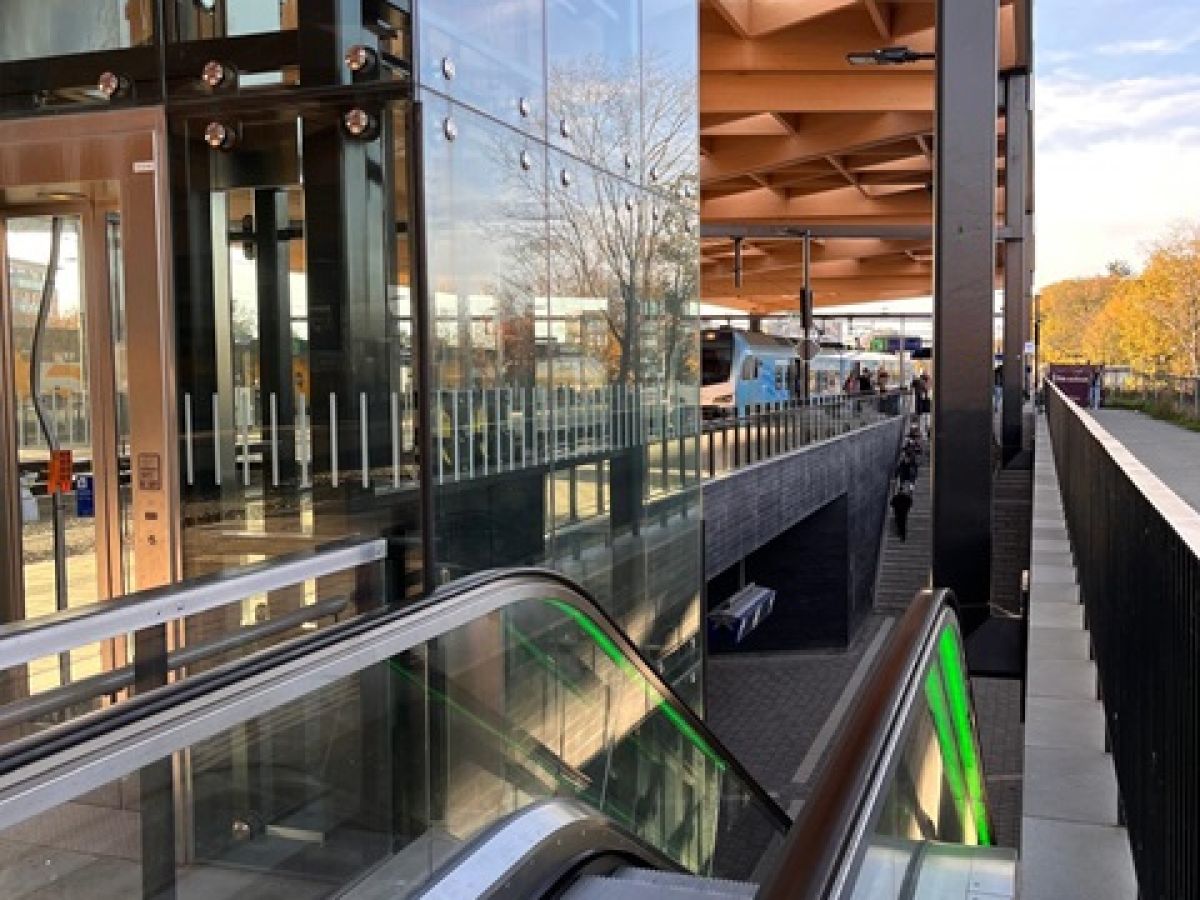 Er is vast over nagedacht op welke plekken trappen, roltrappen en wachthokjes het meest efficiënt kunnen worden geplaatst. Gek genoeg komt de lift én de roltrap naar spoor 1 uit op een plek waar zelden een trein stopt. Er staat ook een wachthok, het enige van dit nieuwe station. Heel vreemd.