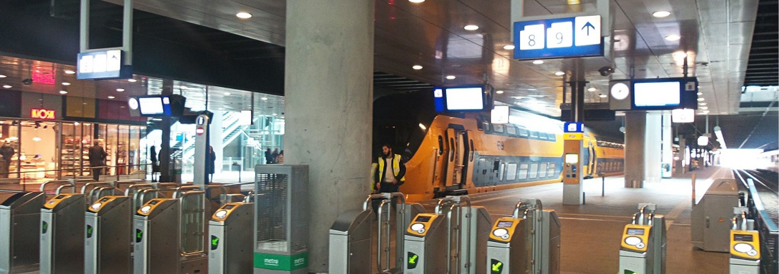De in- en uitcheckpoortjes bij de perrons 7, 8, 9 en 10 worden nu ruim zes meter de hal in geplaatst en er komen extra poortjes bij. Zo wordt de in- en uitcheckcapaciteit vergroot en kunnen reizigers makkelijker overstappen zonder dat ze in en uit moeten checken. Hierna kunnen de poortjes worden gesloten.