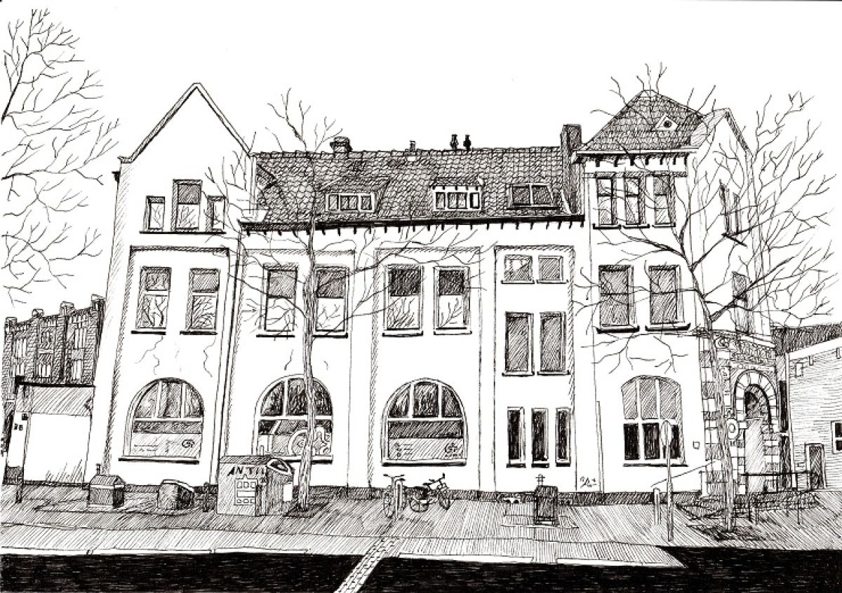Voormalig tramstation Rotterdam Rosestraat, tekening van Sandra Mackus