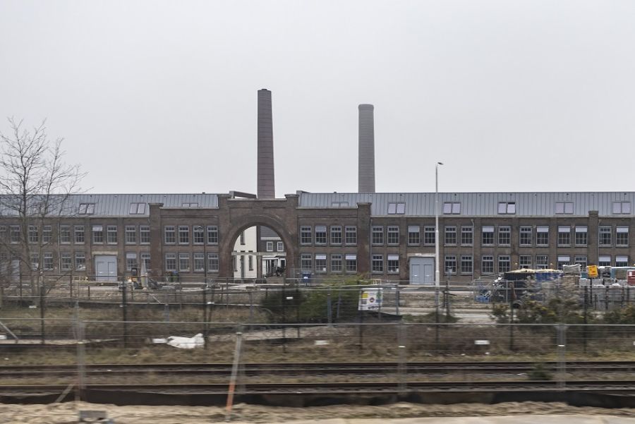 L 0,4: Op enige afstand van het spoor zien we een groot gebouw met een stomp torentje (foto 1). Dit is het hoofdkantoor van ProRail. Het bestaat uit 22 miljoen bakstenen en is daarmee het grootste bakstenen gebouw van Nederland. Het rijksmonument uit 1922 wordt De Inktpot genoemd, vanwege een misschien wat vergezochte gelijkenis met een inktpot. Het is desalniettemin ook de officiële naam geworden.