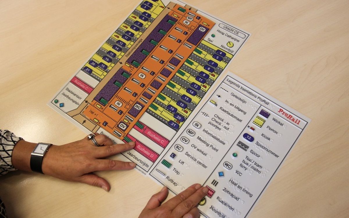 Voor Amsterdam Centraal, Den Haag Centraal, Rotterdam Centraal en Utrecht Centraal zijn voelbare plattegronden ontwikkeld. Reizigers met een visuele beperking kunnen thuisversies daarvan kosteloos aanvragen bij ProRail, zodat ze zich thuis kunnen voorbereiden op hun gang door die complexe stations. Leden van de Oogvereniging waarderen de plattegronden zo dat ProRail de reeks uitbreidt met Amsterdam Bijlmer Arena, Amsterdam Sloterdijk, Arnhem Centraal, Den Bosch, Leiden Centraal en Zwolle.