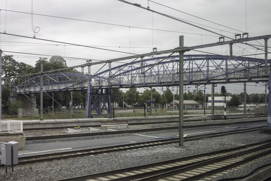 0,2: we laten station Zwolle achter ons, maar nauwelijks vertrokken, passeren we nog een rijksmonument. We gaan eronderdoor: de Hoge Spoorbrug. Hoog is natuurlijk een relatief begrip, maar de bewoners vonden hem bij de opening in 1883 waarschijnlijk hoog vanwege de steile hellingen aan weerszijden. De monumentale status dankt de brug aan het ontwerp. De beide overspanningen worden gedragen door een lensvormige constructie. Het lijkt of twee grote ogen je aankijken, vandaar de naam lensligger. Het is de enige overgebleven brug in Nederland met zo’n constructie.