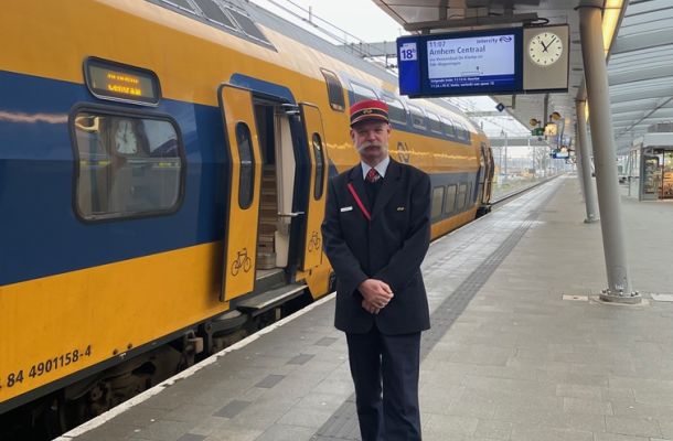 Zie je een altijd vrolijke NS-conducteur lopen met een rode pet en een markante snor? De kans bestaat dat dit Patrick is.