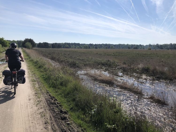 Hierna slaat de stemming om. We hebben in Tilburg een minder fijne slaapplek; er kan geen raam open en het ruikt er naar motorolie. We slapen slecht en voelen ons niet fit. Daardoor valt de laatste dag – slechts zestig kilometer maar wel tegen de wind in – ons zwaar. Ook al fietsen we door het mooie natuurgebied Kampina. Als we na de lunch in het leuke en enorm opgeknapte industriegebied in Veghel merken dat we een tablet en een e-reader kwijt zijn eindigt deze tocht in mineur. Altijd de fietsen en bagage in de gaten blijven houden, een moment van onoplettendheid blijkt genoeg…