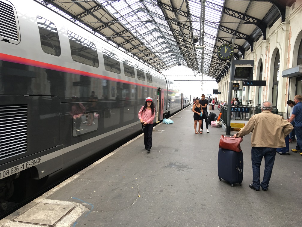 Een vakantie in Noord-Spanje begint echt al op de eerste reisdag. De Thalys is natuurlijk al fijn reizen. OK, de overstap per metro is wat gezoek en gesleep… Na Parijs wordt het nog mooier: het wordt dan (meestal) per dubbeldeks TGV Duplex ‘laagvliegen’ door de Franse korenvelden. Comfortabele stoelen, overal stopcontacten, gratis wifi en een café-bar met goed eten en drinken (die wel druk kan worden). Zeker in de eerste klas is het echt genieten van het comfort – wat ook wel fijn is tijdens een reis van 4,5 uur over bijna 700 km. Tip: boek als het kan een stoel bovenin voor de beste uitzichten. Na aankomst in Hendaye is het nog een klein stukje met de metro.