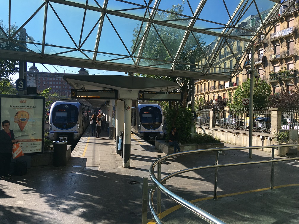 rechterhand zie je al het kleine station van Euskotren (www.euskotren.eus/en/). Vandaar