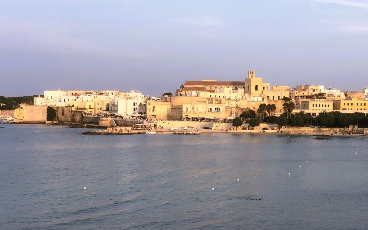 De volgende dag gingen we naar Otranto, waar onze achtdaagse trekking over kustpaden begon. Er is tijdelijk treinvervangend busvervoer, want de spoorlijn en de stations op het traject naar Otranto worden vernieuwd, inclusief elektrificatie. Drie busregelaars zorgen er vooral voor dat de bushalte niet als parkeerplaats wordt gebruikt. De bus komt op tijd de hoek om, maar kan de halte niet bereiken omdat een ambulance de weg blokkeert. Na veel gepraat en drukke handgebaren blijkt de ambulance toch een beetje opzij gezet te kunnen worden, zodat de bus erlangs kan.
