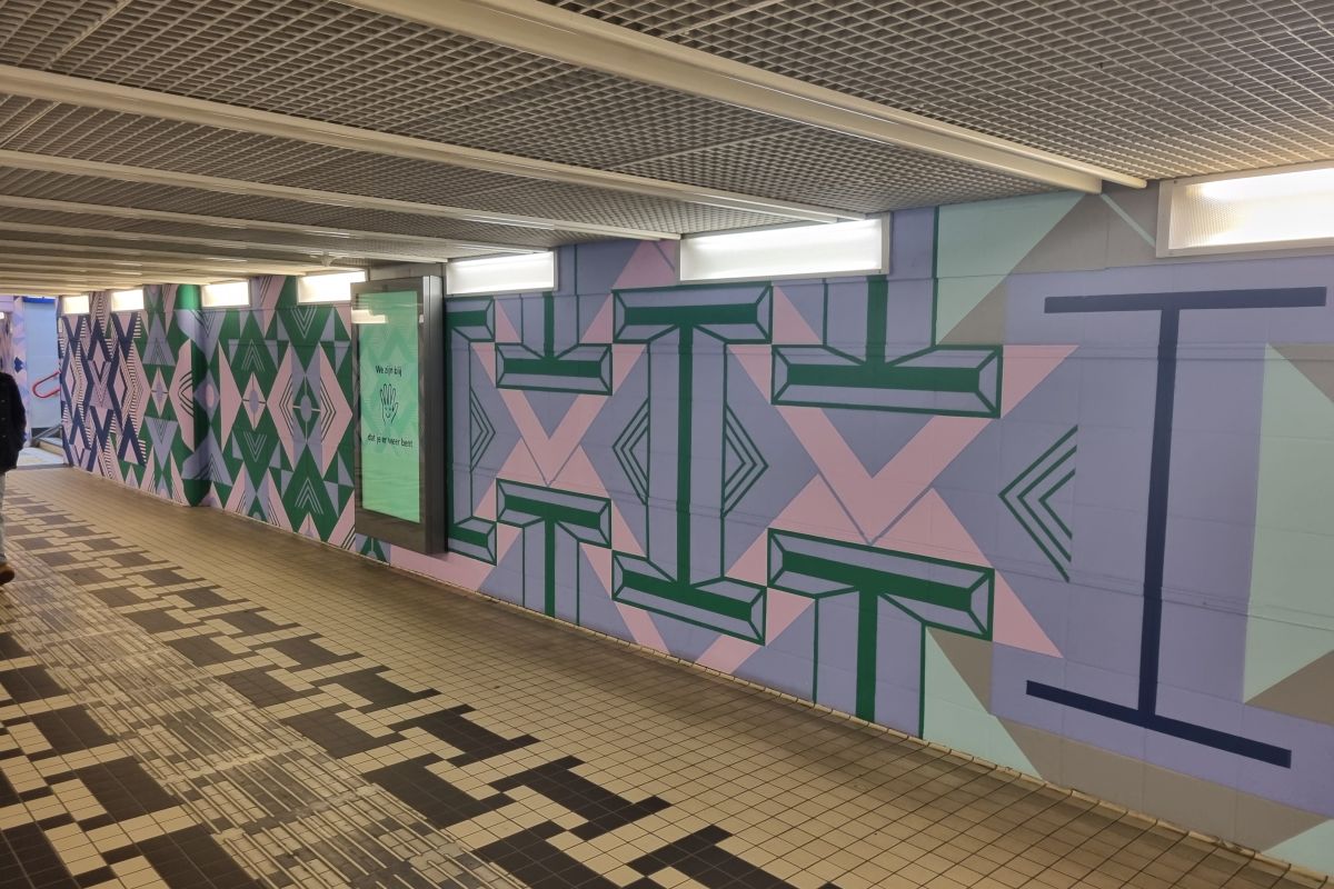 Deze doorgang is onlangs iets aantrekkelijker gemaakt. Wel geslaagd, maar het blijft een tunnel waar je het liefst zo gauw mogelijk doorheen bent.