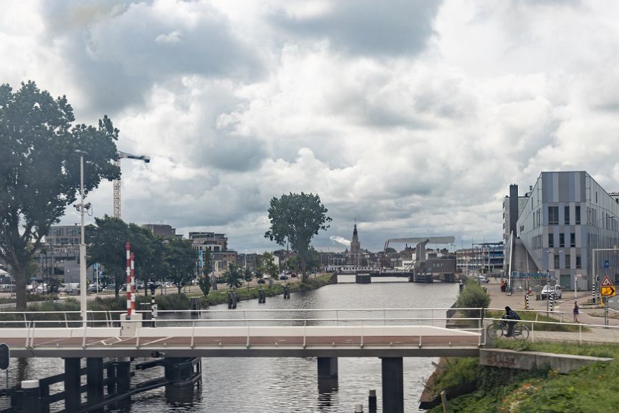 Dat geldt ook voor het Noord-Hollandskanaal dat we na station Alkmaar Noord (het gebouw dateert van 2020) nog een keer oversteken. Alkmaar heeft er veel voor over gehad om het kanaal naar zich toe te halen: een deel van de omwalling is er voor gesneuveld. De toren die u links in de verte in het verlengde van het kanaal ziet is geen kerk, maar de Waagtoren aan de kaasmarkt. De enige plaats in Nederland waar door lokale producenten nog daadwerkelijk kaas wordt verhandeld. Het is wel hoofdzakelijk een toeristisch gebeuren geworden (voor meer informatie zie https://www.kaasmarkt.nl/)