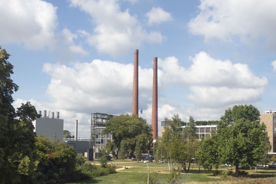 Het laatste station voor Eindhoven is Strijp-S, vernoemd naar het stadsdeel Strijp. De toevoeging S slaat op het eerste bedrijvenpark dat Philips hier in 1916 vestigde. Dat we de stad van Philips binnenrijden zal niemand ontgaan. Op diverse gebouwen aan de rechterkant is de naam te zien. Op de achtergrond vallen twee schoorstenen op. Deze zijn van de oude energiecentrale van Philips. Ze zijn 76 meter hoog. Het zijn de meest imposante tweelingschoorstenen die er nog staan in Nederland volgens Arjen Barnard, schrijver van het boek 'Fabrieksschoorstenen in Nederland'. Ze zijn gerestaureerd en hebben een monumentale status.