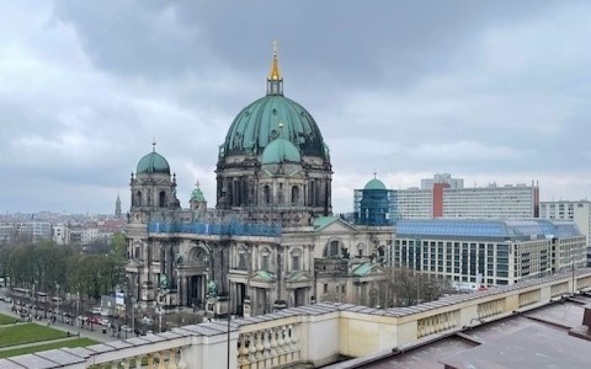 Berlijn is vrediger en wijdser dan London en Parijs. Fietsen door Berlijn is een genot. Geen oneindig getoeter. We steken altijd in de kapel bij de Gedachtniskirche een kaarsje aan voor oma. Oma was dol op Berlijn. Het is er heerlijk stil. Wil je een mooi uitzicht over Berlijn maar vind je de TV toren van 368 meter hoog te hoog? Op het museumeiland stond ooit het Stadsslot, tijdens de Tweede Wereldoorlog verwoest. De DDR bouwde daar het communistisch partijkantoor. Na de wende werd het Stadsslot herbouwd in zijn oorspronkelijke staat aan de buitenkant. Van binnen is het een universiteit. Voor slechts 3 euro kunt u het dak bezoeken en genieten van een prachtig uitzicht¨