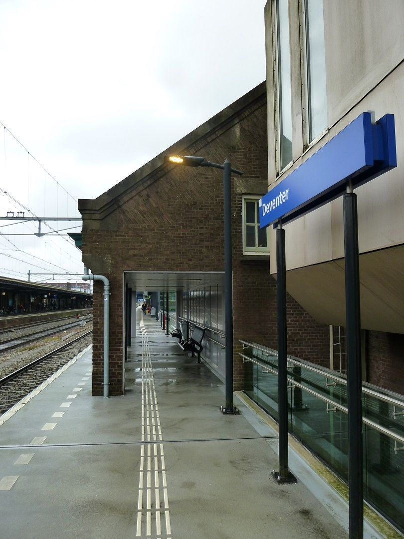 Jammer dat spoor 1 een stuk minder luxe is, met slechts beperkte beschutting. Dit tijdelijke perron is na meer dan 7 jaar een blijvertje. Het is alleen bereikbaar via een stalen trap aan de buitenkant van het oorspronkelijke stationsgebouw.
