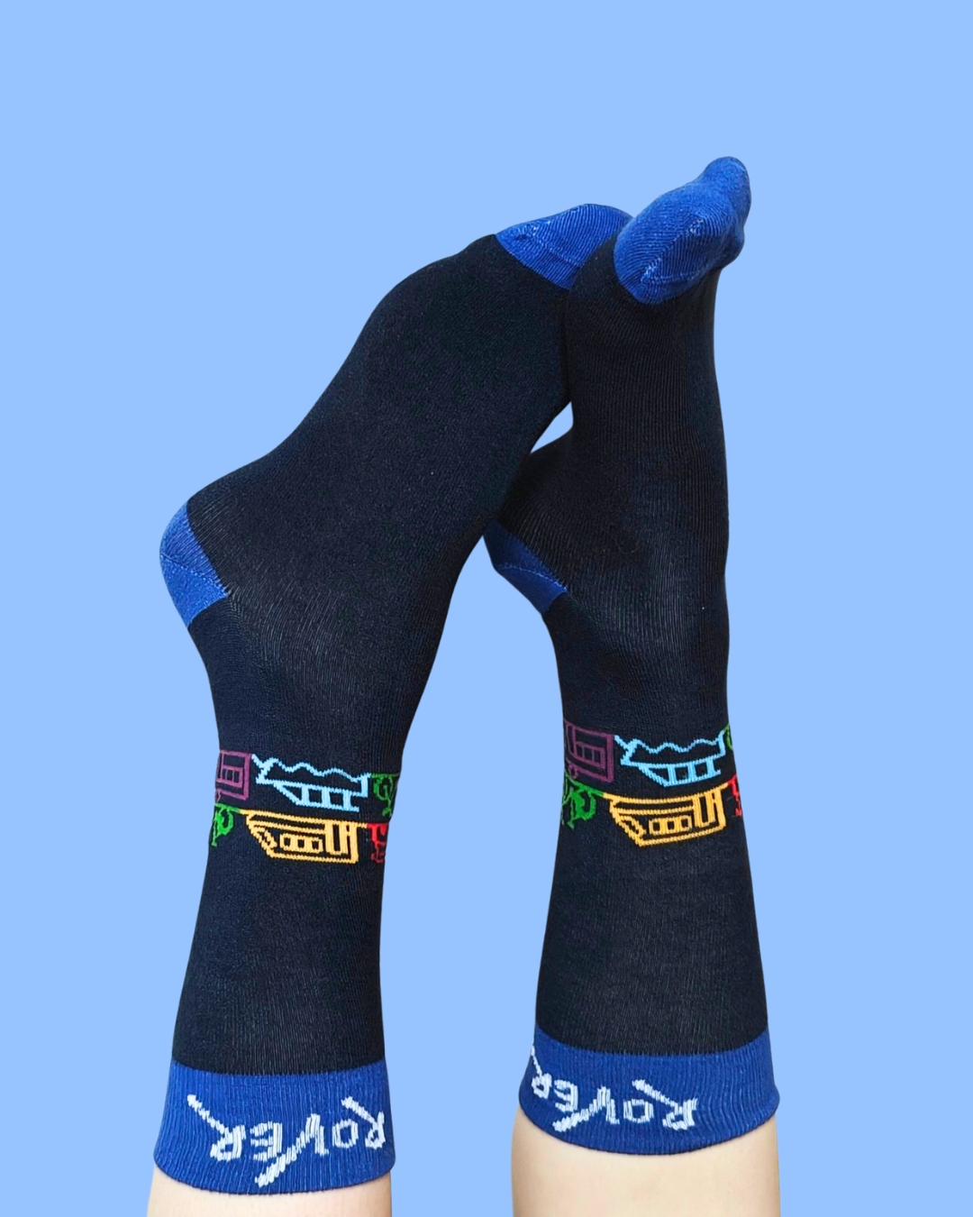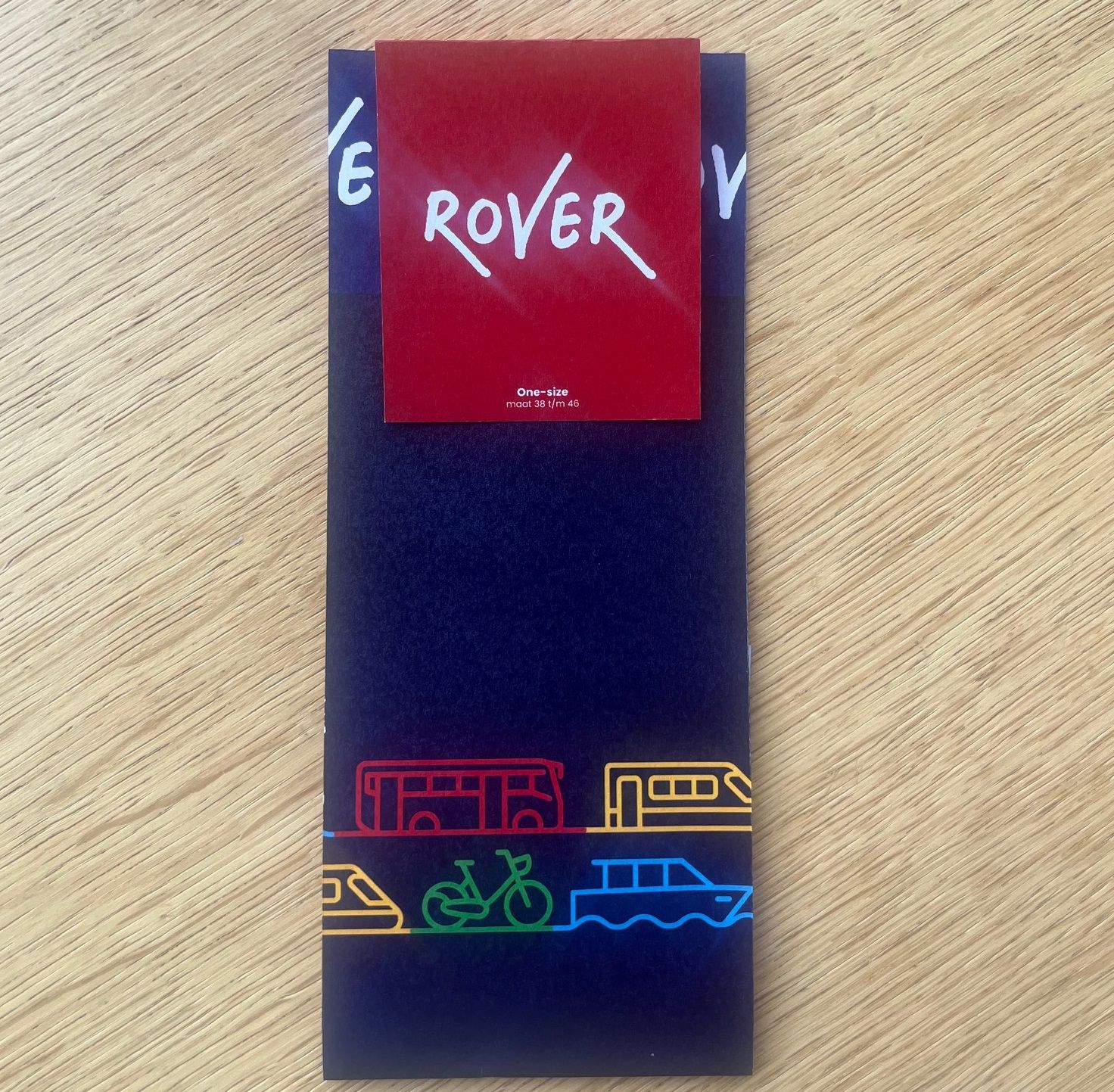 Loop jij straks met een uniek item aan je voeten? Deze Rover-sokken zijn een éénmalige actie en in een gelimiteerde oplage verkrijgbaar. Voor degenen die hun liefde voor het openbaar vervoer, maar vooral voor de reiziger, net iets meer willen uitdragen. Met de aankoop steun je bovendien het werk van Rover. Want samen maken we het openbaar vervoer beter: stap voor stap (of sok voor sok).