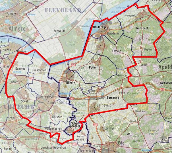 Het werkgebied van de afdeling strekt zich uit over de Gelderse gemeenten Barneveld, Ermelo, Harderwijk, Nunspeet, Nijkerk, Putten en Scherpenzeel en de gemeenten Amersfoort, Baarn, Bunschoten, Eemnes, Leusden, Soest en Woudenberg in de provincie Utrecht. In dit gebied liggen 15 treinstations. We bemoeien ons met fietsenstallingen, toegankelijkheid (liften, hellingbanen enz.), toiletten en andere stationsvoorzieningen en natuurlijk met het aansluitend openbaar vervoer, de Regiotaxi en de andere taxi’s.